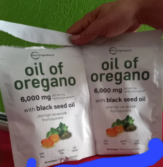 Frasco 90 softgels Oil of Oregano + Black Seed Oil. Sin GMO, gluten free, lab tested.