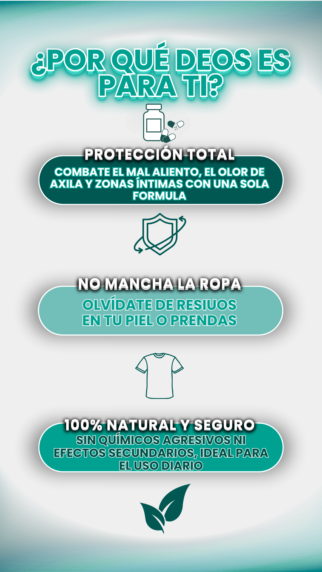 Deos™ no solo combate olores… también desintoxica el intestino, mejora la flora intestinal, regula el pH íntimo y potencia tu energía natural. Frescura real desde adentro hacia afuera.