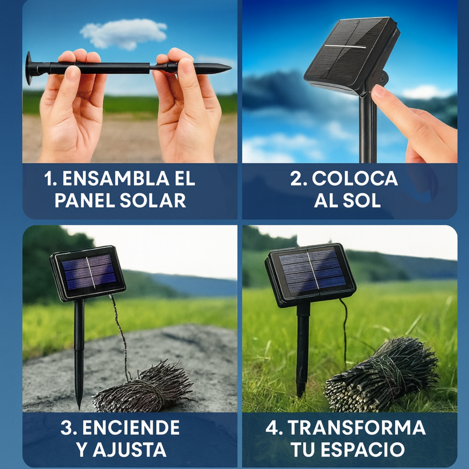 Decora tu hogar esta Navidad con energía solar, sin cables ni enchufes. Iluminación cálida y mágica para balcones, terrazas y jardines.